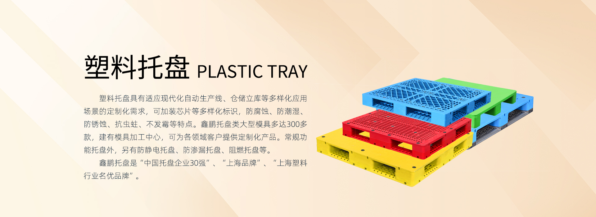 上海鑫鵬塑料創(chuàng)始于1987年,始終專注深根塑料產(chǎn)業(yè)鏈,業(yè)務(wù)板塊包括:塑料原料貿(mào)易、塑料制品研發(fā)制造(塑料托盤、塑料箱筐、卡板箱、環(huán)衛(wèi)桶等)?,F(xiàn)全國(guó)有5個(gè)生產(chǎn)基地:上海2個(gè)、四川1個(gè)、江蘇2個(gè)。